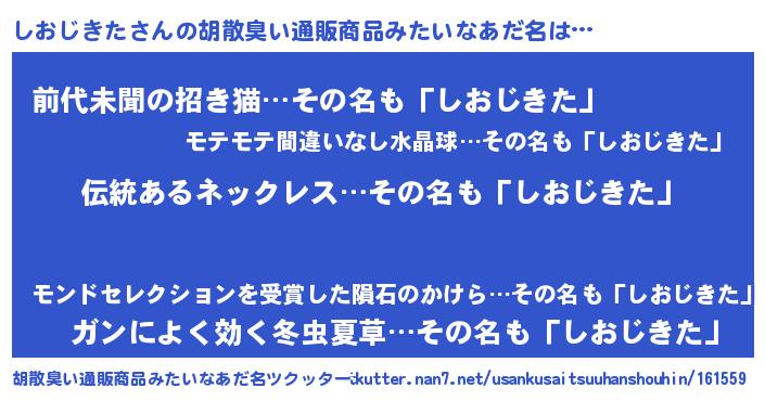 | ヘコむあだ名 | 『しおっぺ』『しおじきた(笑)』 |