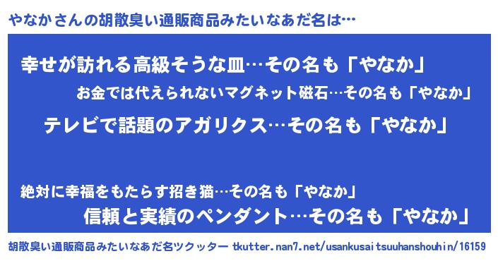 | ヘコむあだ名 | 『なまこ酢』『やなぷりん』 |