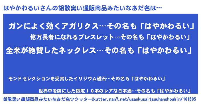 | 意味不明あだ名 | 『とにかく怪しいはやかわるい』 |