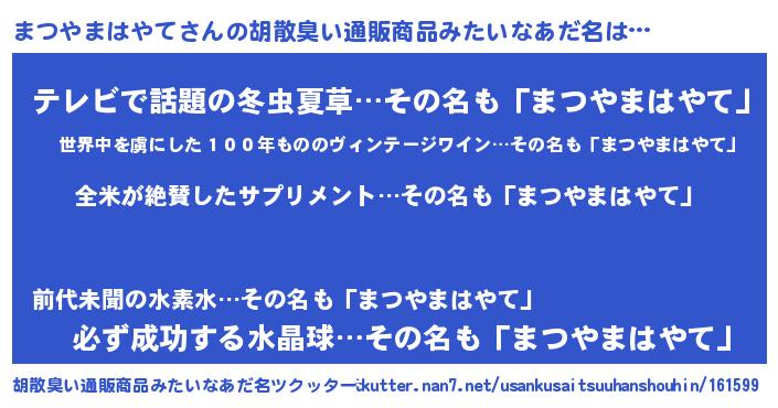 まつやまはやてさんの胡散臭い通販商品みたいなあだ名をツクッター!