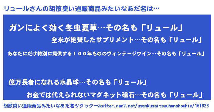 | 意味不明あだ名 | 『住所不定無職リュール(1歳)』 |