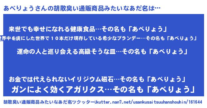 | 意味不明あだ名 | 『あべりょうフォーエバー』 |