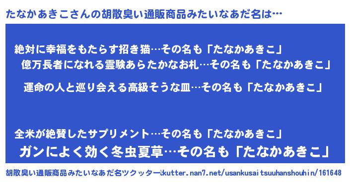| ファンタジー風あだ名 | 『エターナルタナカアキコー』 |