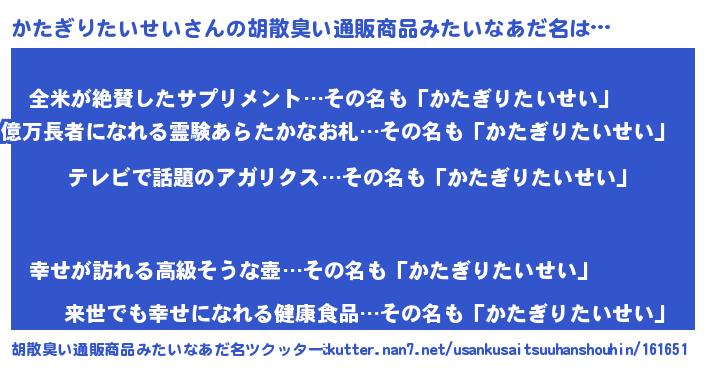 | ヘコむあだ名 | 『かたっぺ』『かたぎりたいせい(苦笑)』 |