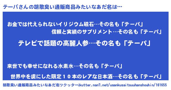 | ヒーロー風カッコイイあだ名 | 『ウルトラ戦士テーパ』『愛の使者テーパ』 |