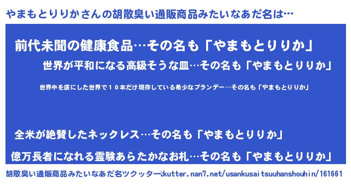 | 意味不明あだ名 | 『住所不定無職やまもとりりか(74歳)』 |