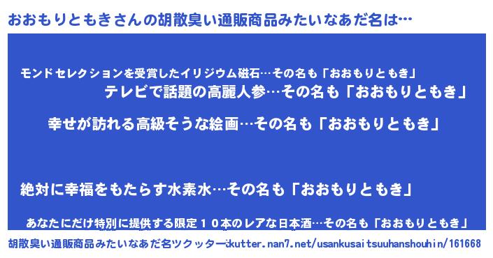 | 意味不明あだ名 | 『おおもりともきフォーエバー』 |