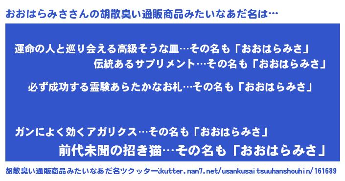 | 男性向けラノベタイトル風あだ名 | 『おおはらみさの憂鬱』 |