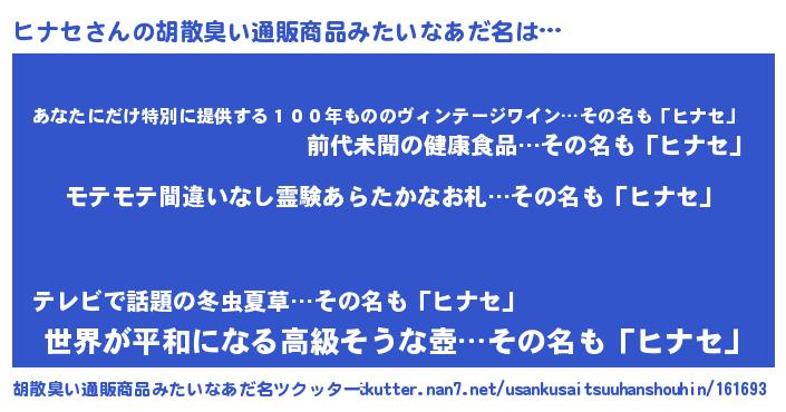 | ヒーロー風カッコイイあだ名 | 『スーパーヒナセ』『仮面ヒナダー』 |