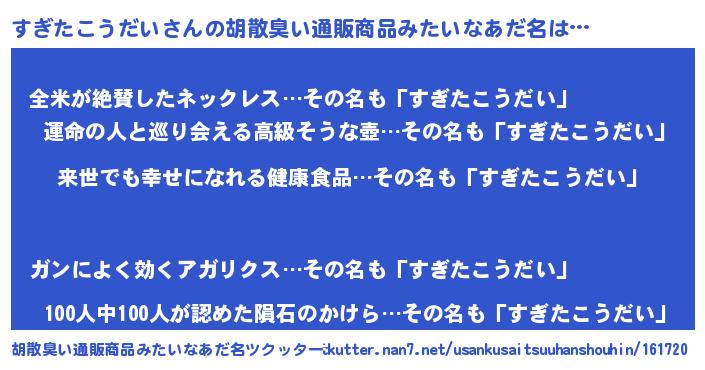 | ピコ太郎風あだ名 | 『ピコス郎』『スギ史郎』『スス太郎』 |