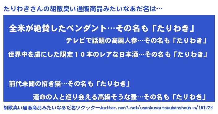 | ヘコむあだ名 | 『たり太郎』『豆乳』『たりにゅー』 |