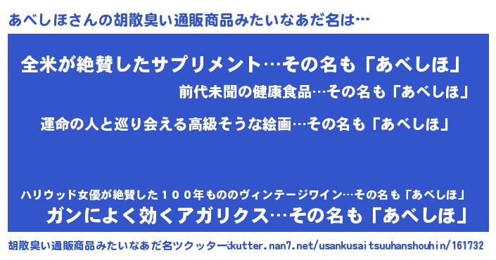 | 欧米人風あだ名 | 『あべしほクリステル』 |
