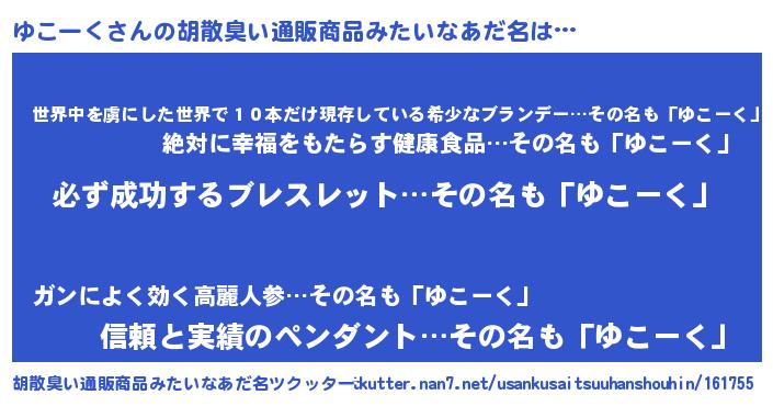 | ヒーロー風カッコイイあだ名 | 『スーパーユコーク』『仮面ユコダー』 |
