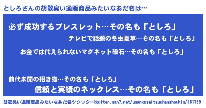| ヘコむあだ名 | 『としにー』『とし太郎』『なまこ酢』 |
