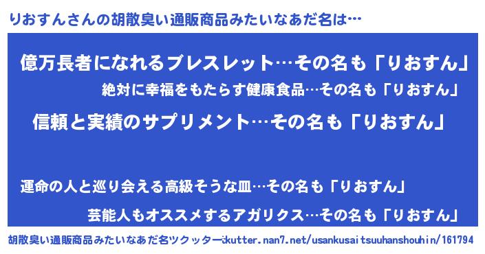 | 意味不明あだ名 | 『とにかく怪しいりおすん』 |