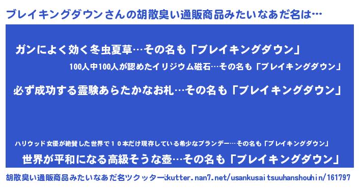 | 男性向けラノベタイトル風あだ名 | 『ブレイキングダウンの憂鬱』 |