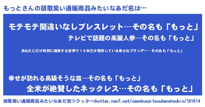 | 意味不明あだ名 | 『住所不定無職もっと(91歳)』『自称もっと』 |