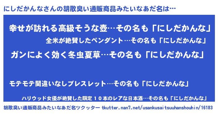 | 意味不明あだ名 | 『自称にしだかんな』 |