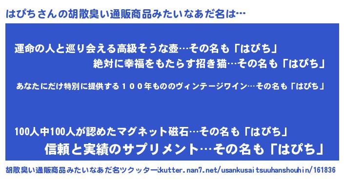 | ヒーロー風カッコイイあだ名 | 『仮面ハピダー』『ウルトラはぴちマン』 |