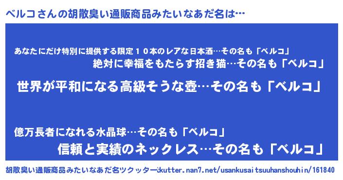| 意味不明あだ名 | 『ベルコフォーエバー』『永久保存ベルコ』 |