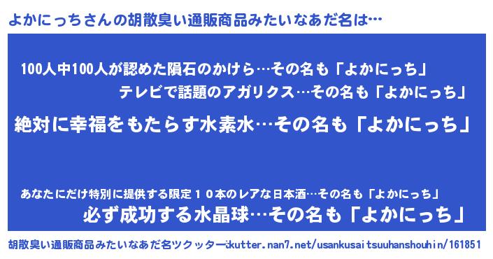 | 意味不明あだ名 | 『永久保存よかにっち』『自称よかにっち』 |