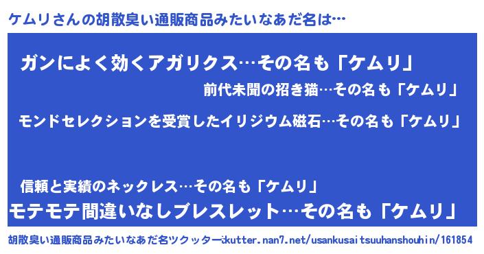 | ヒーロー風カッコイイあだ名 | 『慈愛の使者ケムリ』『超時空戦士ケムリ』 |