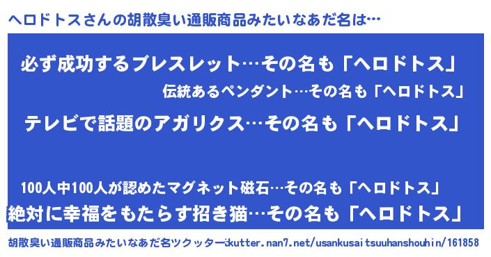 | ヘコむあだ名 | 『ヘロにゅー』『ヘロドトス(小並感)』 |