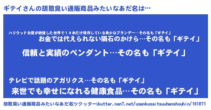 ギテイさんの胡散臭い通販商品みたいなあだ名をツクッター!