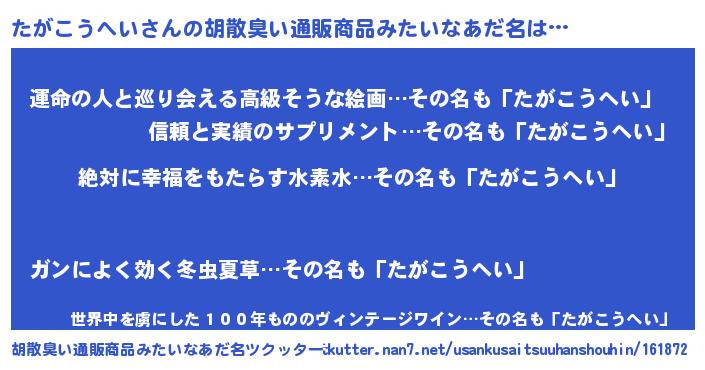 たがこうへいさんの胡散臭い通販商品みたいなあだ名をツクッター!