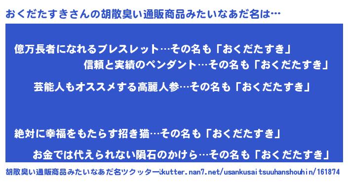 | 伝説のあだ名 | 『封印されし竜騎士おくだたすき』 |