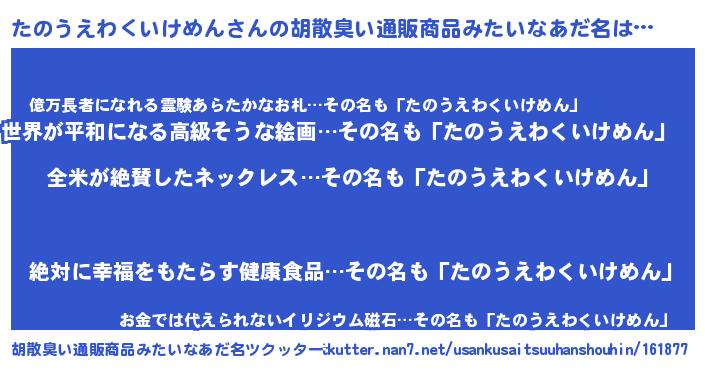 | 欧米人風あだ名 | 『ウサインたのうえわくいけめん』 |