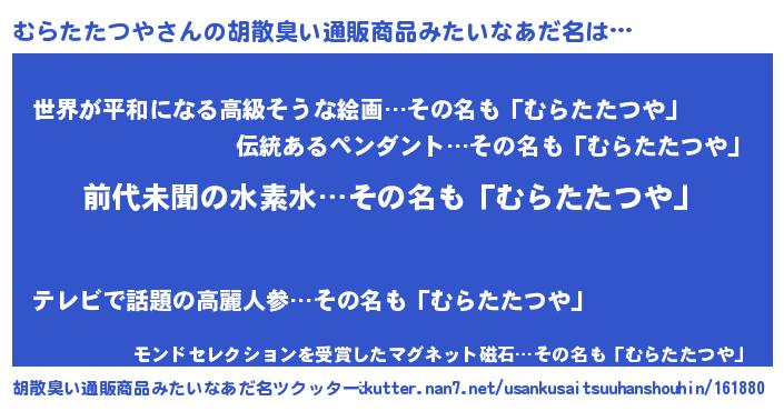 | 伝説のあだ名 | 『古文書に記された勇者むらたたつや』 |