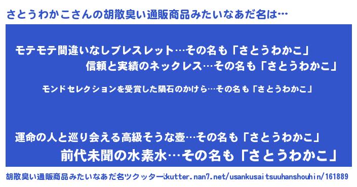 | ヘコむあだ名 | 『さとっふぃ~』『さとうわかこ(笑)』 |