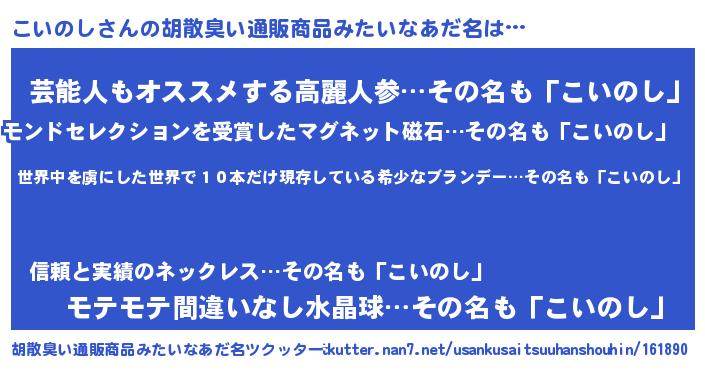 | 意味不明あだ名 | 『住所不定無職こいのし(84歳)』 |