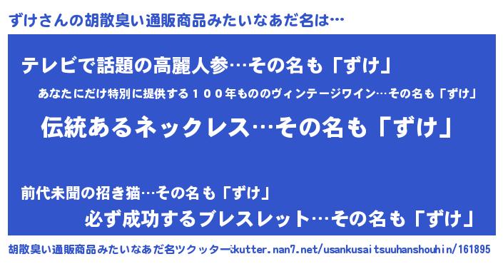 | ヘコむあだ名 | 『ずけ太郎』『ずけにゅー』 |