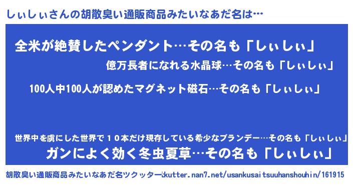 | 欧米人風あだ名 | 『ダニエルしぃしぃ』『ウサインしぃしぃ』 |