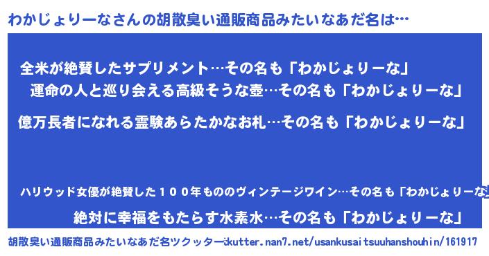 | 欧米人風あだ名 | 『マイケルわかじょりーな』 |