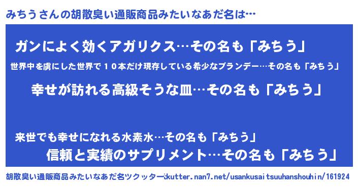 | 意味不明あだ名 | 『みちうフォーエバー』『自称みちう』 |