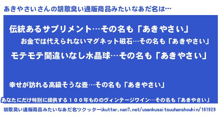 | ヘコむあだ名 | 『あきにゅー』『あきを』『牛乳』 |