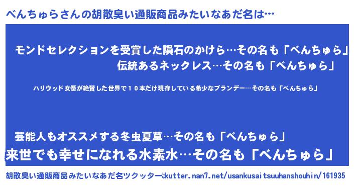 | 恥ずかしいあだ名 | 『ボンバーヘッドべん』『べんちん』 |