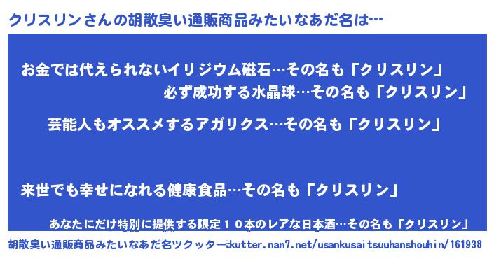 | 意味不明あだ名 | 『自称クリスリン』『ペロリンクリスリン』 |