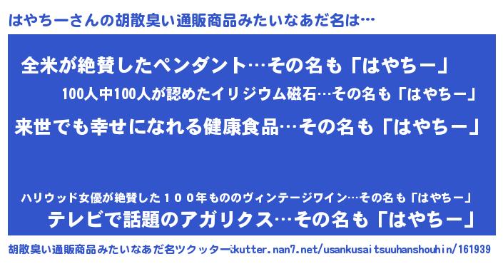 | ヘコむあだ名 | 『はやちー(爆)』『はやっちょ』 |