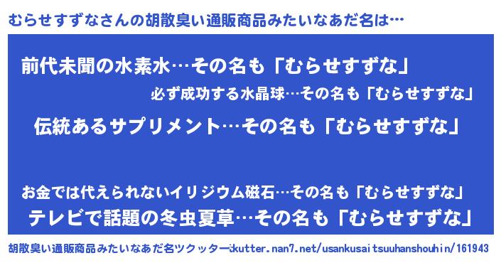 むらせすずなさんの胡散臭い通販商品みたいなあだ名をツクッター!