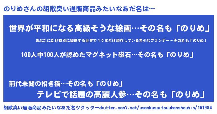 | 意味不明あだ名 | 『眠気覚ましガムのりめ味』『自称のりめ』 |