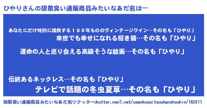 | 意味不明あだ名 | 『ひやりフォーエバー』『自称ひやり』 |