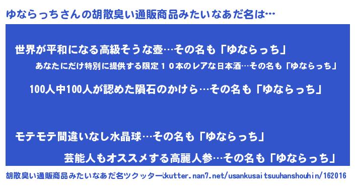 | 男性向けラノベタイトル風あだ名 | 『おまえをオタクにしてやるから、俺をゆならっちにしてくれ! 』 |