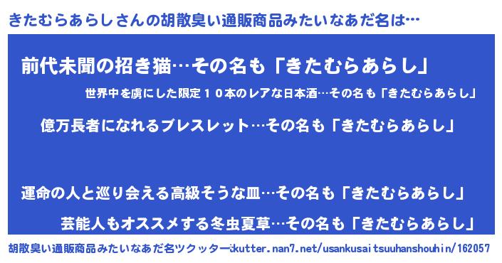 | 肩書あだ名 | 『きたむらあらし大佐』 |