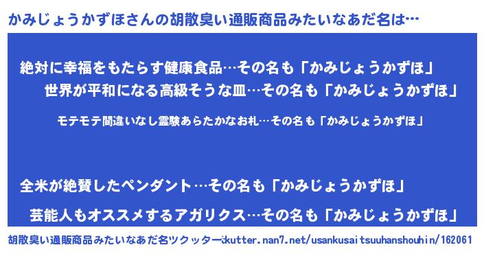 | 肩書あだ名 | 『かみじょうかずほプロデューサー』 |