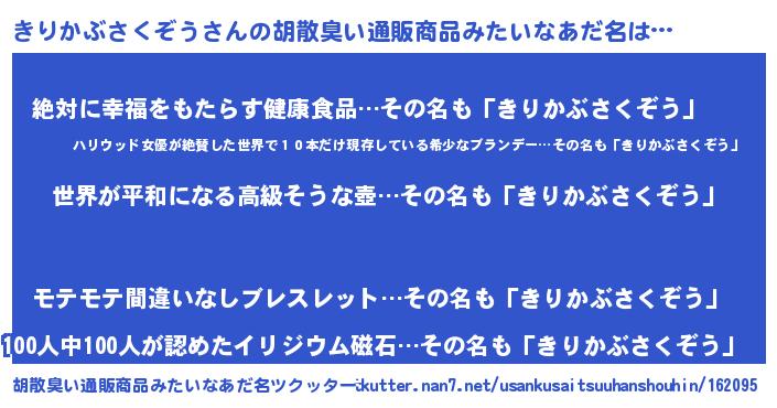 きりかぶさくぞうさんの胡散臭い通販商品みたいなあだ名をツクッター!