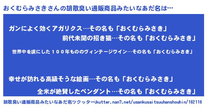 | 意味不明あだ名 | 『住所不定無職おくむらみさき(7歳)』 |